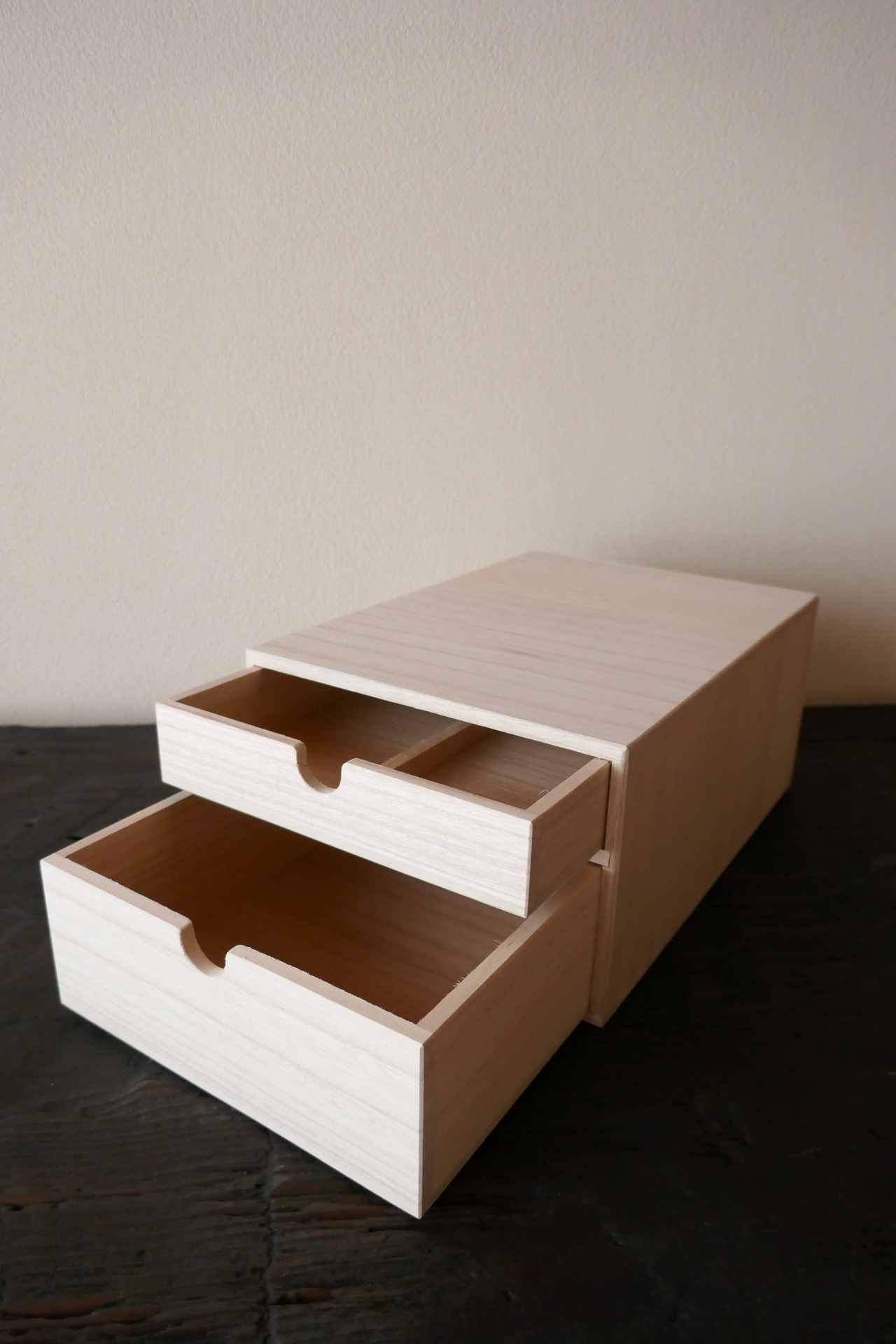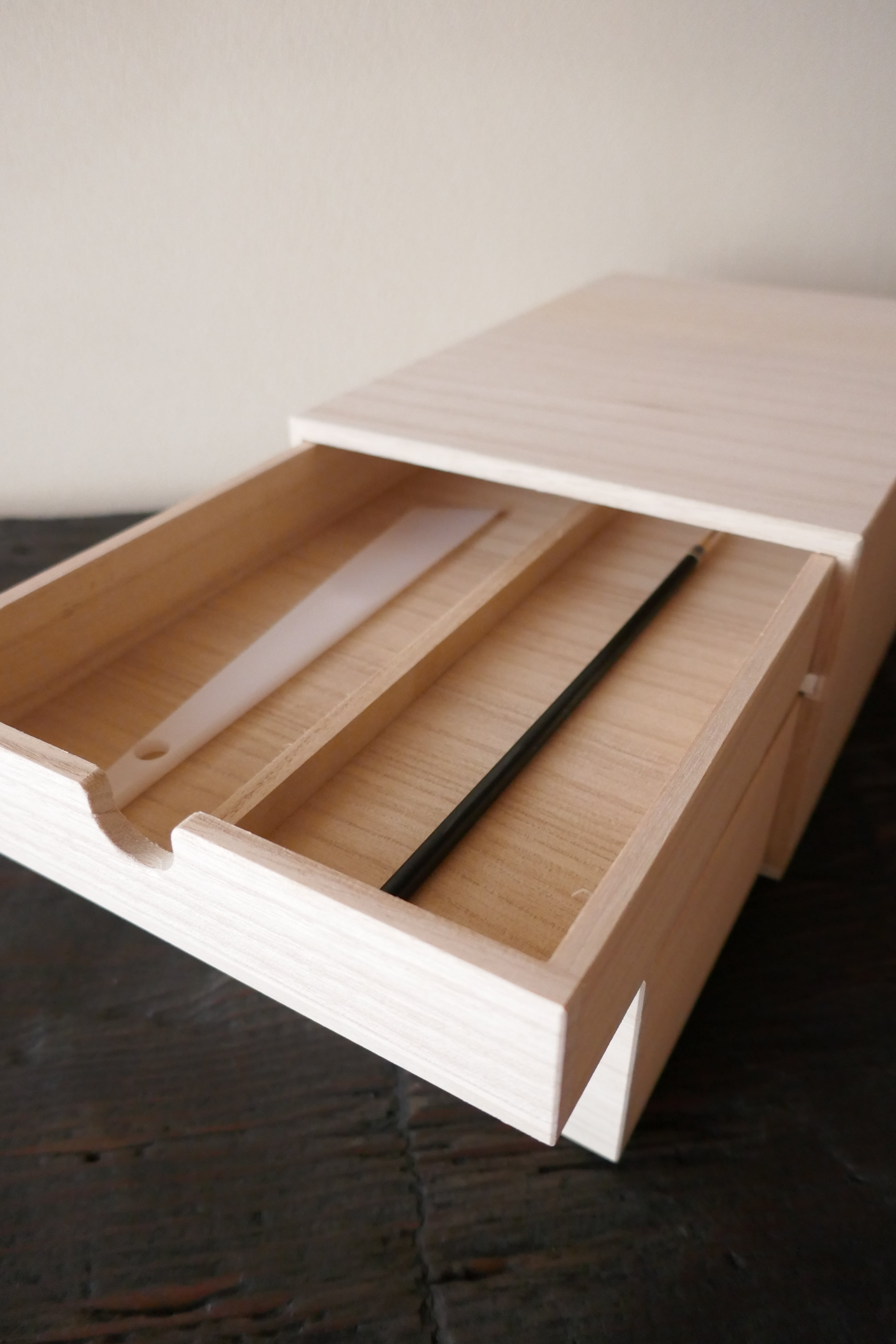 日本の箱職人の手によって丁寧に作られたこの道具箱は、茶箱にも通じる和の美しさ感じる自然な木目と、心地よい質感が魅力です