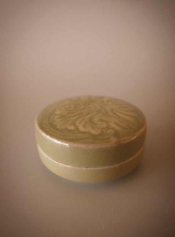 品名:002 青磁 陽刻蓮文 盒子 / 香合