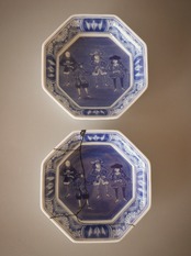 染付南蛮絵螺鈿 八角小皿 1組 (螺鈿仕上)