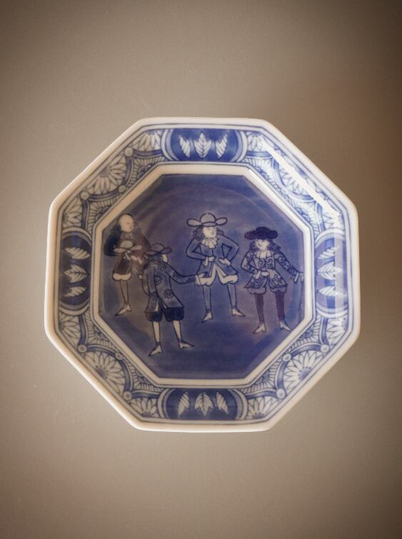 品名:003 染付 南蛮絵螺鈿 八角小皿