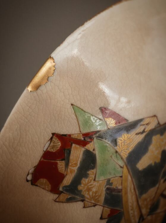 縁の金彩の時代による朽ちに合わせ優しい金をあしらいました